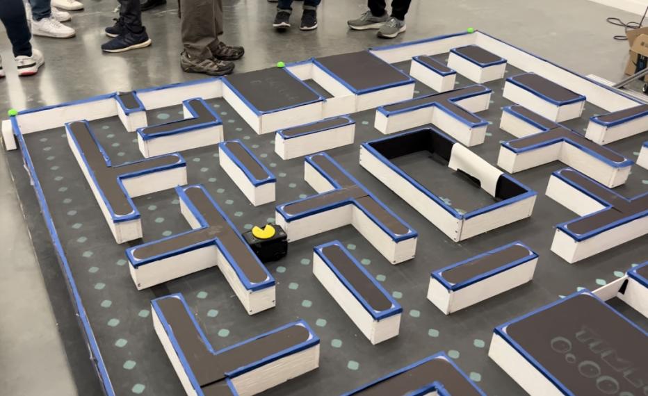 PacBot is a small autonomous robot that navigates a physical PacMan maze to collect pellets and avoid ghosts. The team participates in different competitions throughout the year where it competes against other universities.